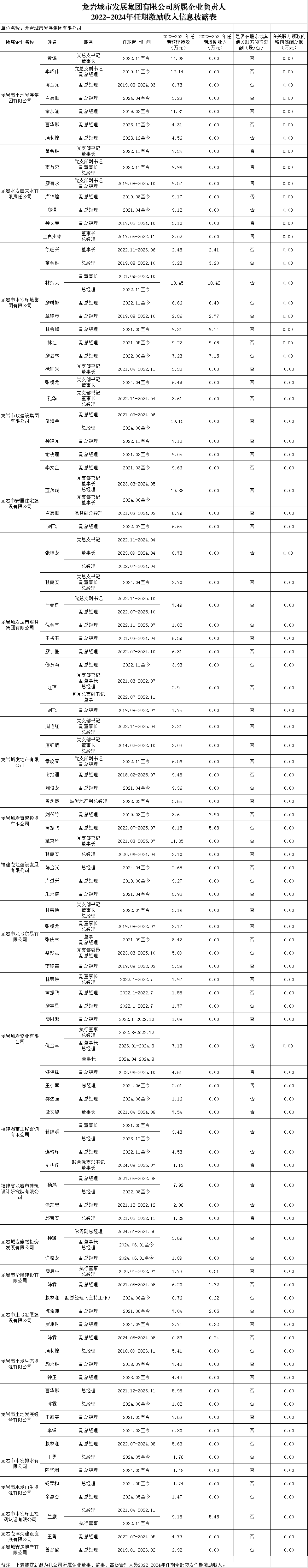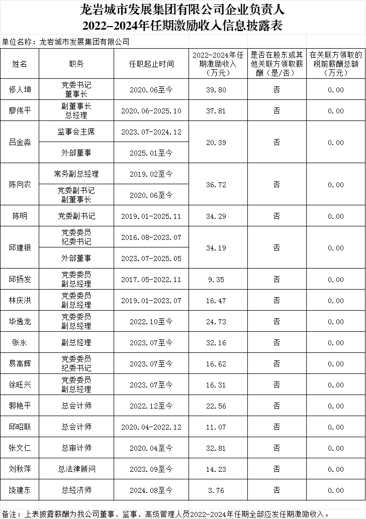 迪威娱乐城有限公司及所属企业负责人2024年度薪酬、2022-2024年任期激励收入信息披露表